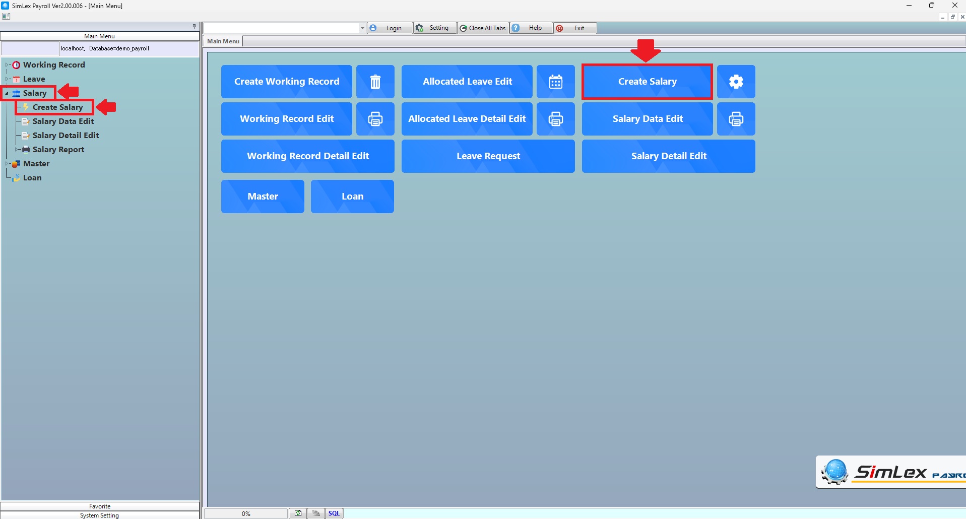 1. Click <Create Salary> from the main menu or double click from the left menu <Salary> and then double click on the menu <Create Salary>.