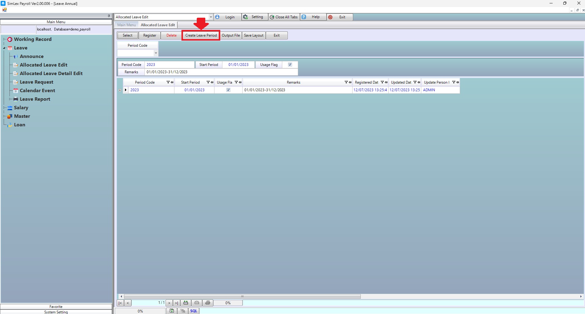 Leave allocation must create a period of leave. Be able to record the date and time of employees’ leave. By creating a period of leave, the steps are as follows.