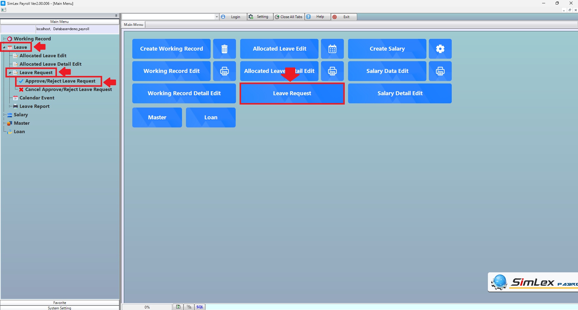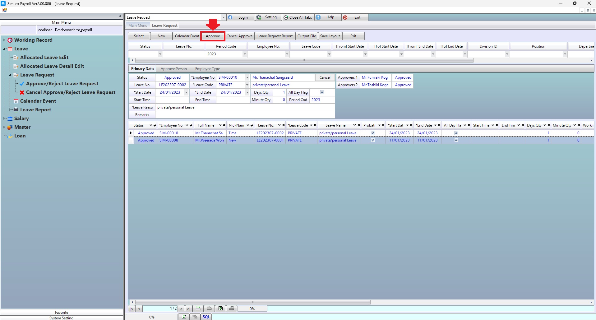 1. Click <Leave Request> from the main menu or double click from the left menu <Leave>, then  <Leave Request> double click on the menu <Approve/Reject Leave Request>.