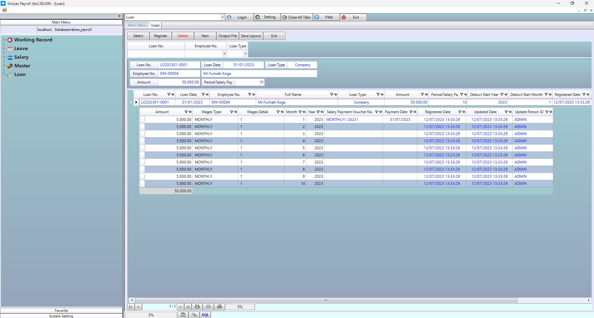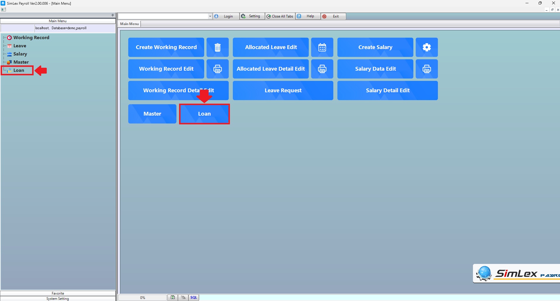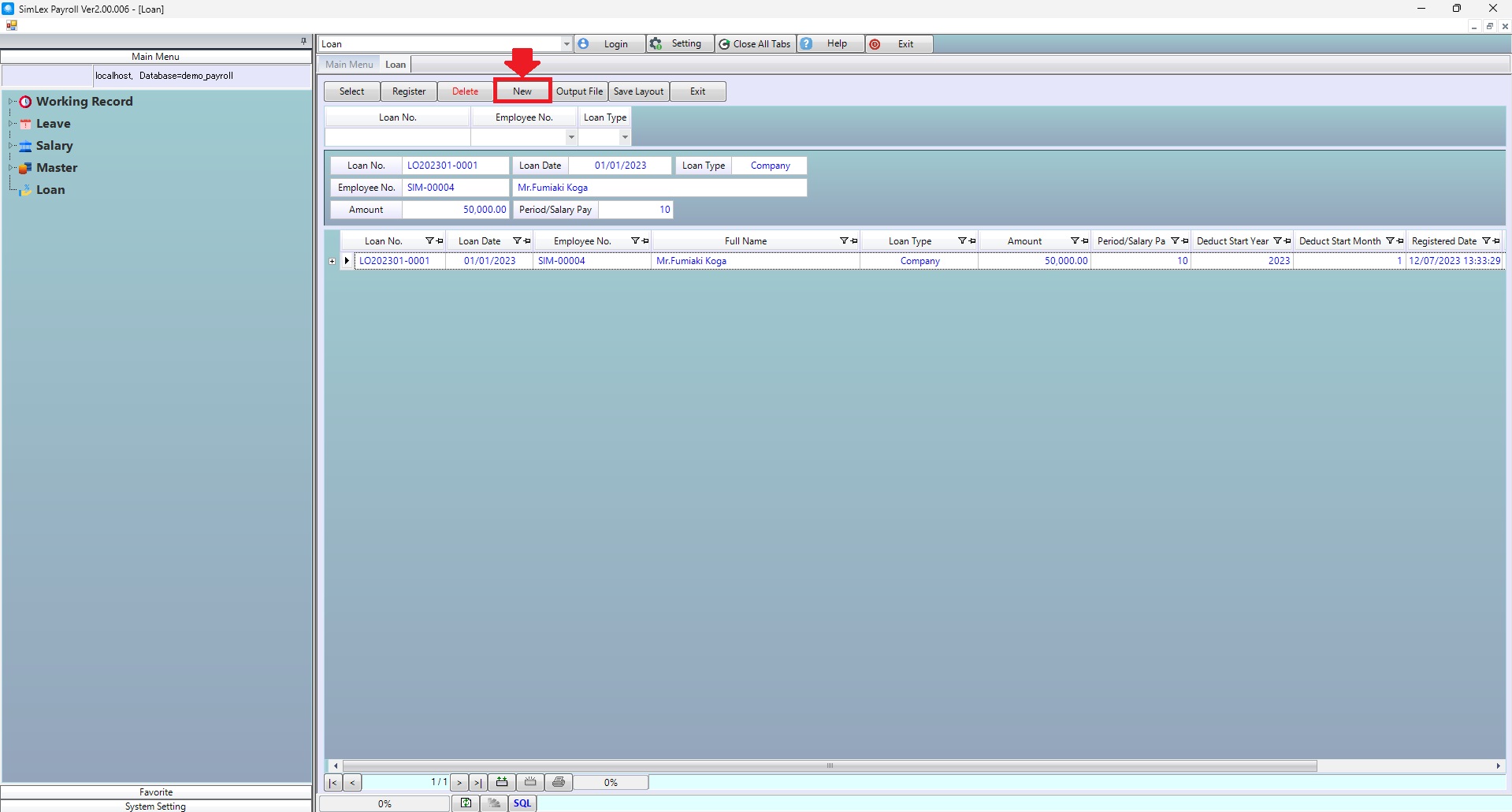 1. Click <Loan> from the main menu or double click from the left menu <Loan>.